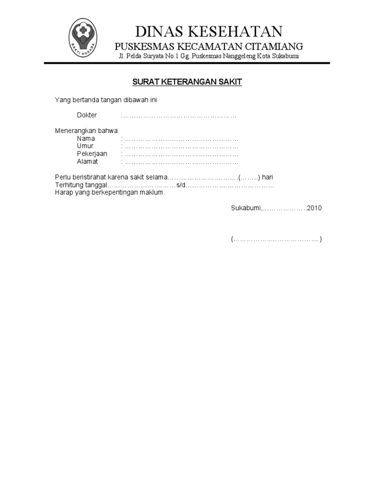 Setiap lembaga formal pasti membutuhkan surat resmi untuk setiap perizinan. Kriteria dalam pembuatan surat tidak resmi yang benar ialah sebagai berikut : Kumpulan contoh surat keterangan penghasilan, kerja untuk kpr, domisili, usaha, pindah sekolah, kuliah dan lain sebagainya, lengkap dengan file docx. Terdapat nama dan alamat pengirim. Apabila besok kondisi badan masih belum baik, saya akan melampirkan surat keterangan sakit dari dokter atau hasil pemeriksaan dokter dan saya sampaikan ketika masuk kembali ke kantor. Padahal, dalam pembuatan surat izin sakit terdapat beberapa susunan yang menjadikan surat itu resmi. Contoh surat bisnis, surat dinas, surat izin, surat kuasa, surat lamaran kerja, surat pemberitahuan, surat penawaran, surat pengunduran diri, surat peringatan, surat perjanjian, surat pernyataan, surat resmi, surat undangan. Surat surat tersebut dikeluarkan langsung oleh pihak pihak tertentu yang terkait contoh surat keterangan domisili biasanya memiliki format yang tegas dalam penyampaian isi dan maksud dari surat tersebut. Surat keterangan merupakan salah satu jenis surat yang paling sering di buat karena isi surat keterangan umumnya menyangkut aktivitas manusia. Seperti apa surat keterangan sakit dari klinik, puskesmas maupun dokter rumah sakit yang asli dan resmi? Dokumen resmi surat kerja ini. Ketika kita mengirim informasi surat resmi dengan cara tulis tangan dan bahasa yang sopan, maka kita akan terlihat lebih profesional dalam suatu hubungan. Jika anda sedang dalam kondisi atau keadaan sakit dan tidak bisa beraktivitas seperti biasanya, maka mungkin saja anda akan pergi memeriksakaan dan berobat ke klinik, puskesmas.